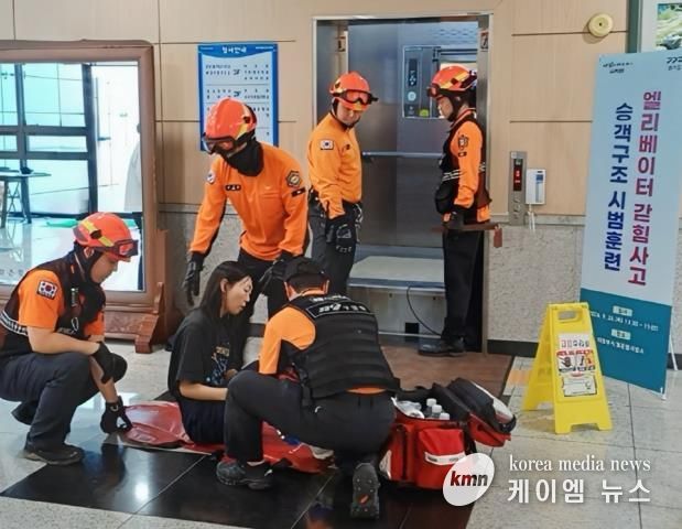 (케이엠뉴스) 의정부시는 9월 26일 맑은물사업소에서 재난 시 정전으로 인한 엘리베이터 갇힘 사고를 가정한 ‘승강기 사고대응 합동훈련’을 실시했다.