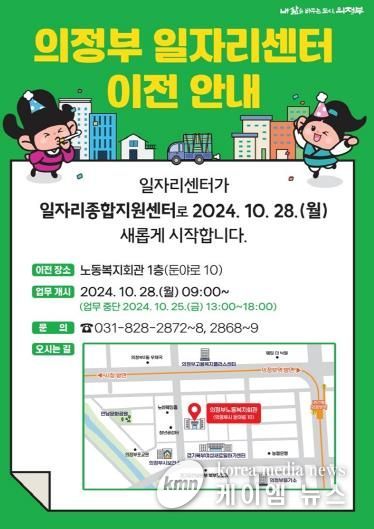 (케이엠뉴스) 의정부시는 의정부일자리센터를 10월 28일부터 노동복지회관 건물(둔야로 10)로 이전해 운영한다고 밝혔다.