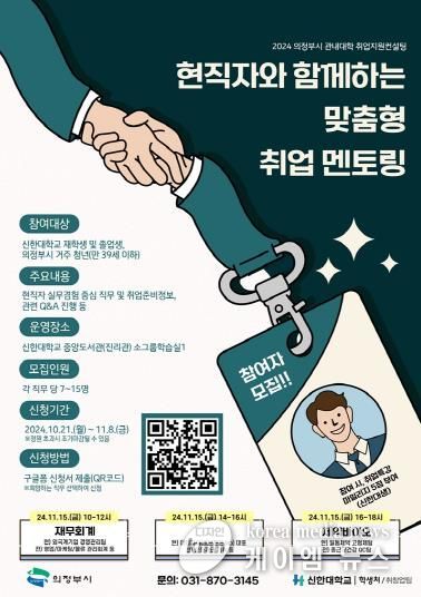 (케이엠뉴스) 의정부시는 전년도에 이어 11월 15일 청년들의 취업목표 설정을 위한 ‘현직자와 함께하는 맞춤형 취업 멘토링’을 진행한다.
