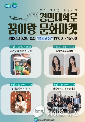 이번 꿈이랑 문화마켓에서는 춤(댄스)과 싱어송 어쿠스틱 공연을 선보인다. 특히 경민대학교 실용음악과 학생들이 참여하고, 자신에게 어울리는 색상(컬러)을 찾는 맞춤 색상(퍼스널 컬러) 진단 체험 공간(부스)을 운영하는 등 청년 참여 중심으로 지역 주민들에게 문화 서비스를 제공할 예정이다.