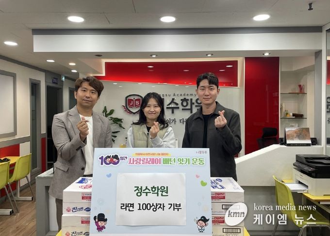 초중고 영어·수학 전문학원인 정수학원은 2021년부터 방학마다 어려운 이웃을 위해 수강료로 라면 한 상자를 기부하는 특강 행사를 이어오고 있다. 이번에 기부된 라면은 저소득 취약계층 30가구 및 관내 경로당 22개소에 전달될 예정이다.