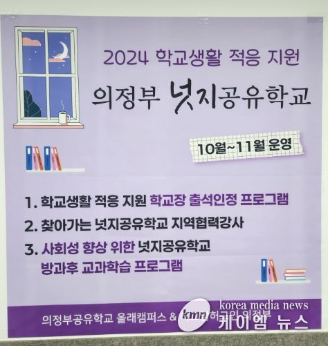(케이엠뉴스) 경기도의정부교육지원청은 10월 28일부터 11월 29일까지 학생의 학교생활 적응을 지원하는‘의정부 넛지공유학교(1기)’를 운영한다.