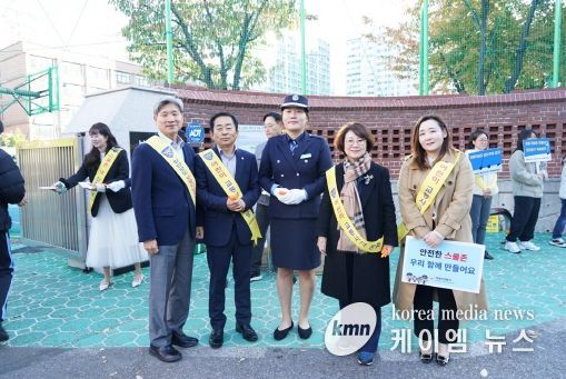 (케이엠뉴스) 의정부시의회 김연균 의장이 6일 오전 발곡중학교 정문에서 학생들의 등굣길 안전을 위한 ‘교통안전 캠페인’에 참여했다.