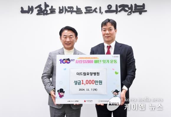 (케이엠뉴스) 의정부시는 11월 7일 더드림요양병원이 ‘100일간 사랑릴레이 배턴 잇기’ 사업에 동참해 어려운 이웃을 위한 성금 1천만 원을 기부했다고 밝혔다.