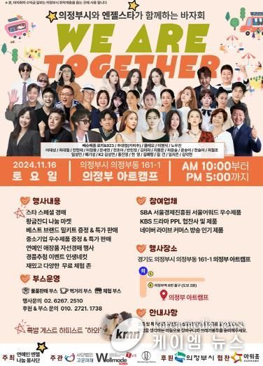 (케이엠뉴스) 의정부시는 11월 16일 오전 10시부터 오후 5시까지 의정부 아트캠프에서 ‘의정부시와 엔젤스타가 함께 하는 바자회’를 개최한다.