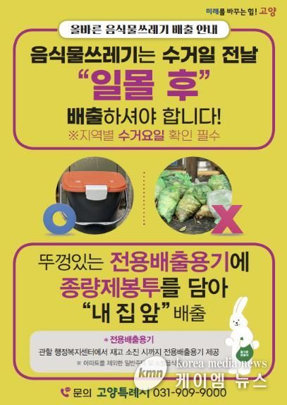 (케이엠뉴스) 고양특례시는 시민들이 음식물쓰레기 배출방법을 쉽게 이해하고 실천할 수 있도록 적극적인 홍보에 나선다고 밝혔다.