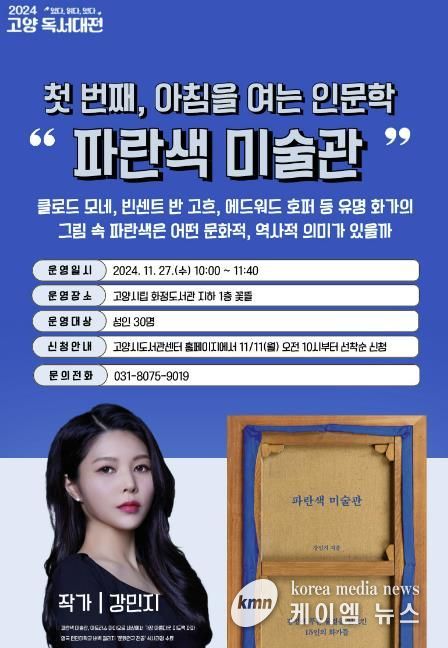 (케이엠뉴스) 고양특례시는 2024 고양 독서대전 연중행사로 ‘아침을 여는 인문학’강연을 오는 11월 27일과 12월 4일 오전 10시, 고양시립 화정도서관에서 운영한다고 밝혔다.