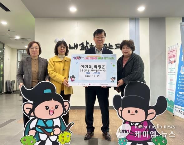 (케이엠뉴스) 의정부시 송산3동행정복지센터는 11월 13일 송산3동 새마을부녀회 이미옥 회장과 박정은 부회장이 ‘100일간 사랑릴레이 배턴 잇기’에 동참해 성금 10만 원을 기탁했다고 밝혔다.
