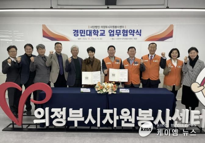 (케이엠뉴스) 사단법인 의정부시자원봉사센터는 지난 11월 13일 경민대학교와 의정부시 자원봉사 활성화를 위한 업무협약을 체결했다.
