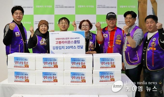 (케이엠뉴스) 국제라이온스협회 354-H(경기북부)지구 고봉라이온스클럽은 지난 15일 고양시덕양행신종합사회복지관에 지역사회 소외계층이 따뜻한 겨울을 보내는 데 도움이 되기를 바란다며 김장김치 20박스를 전달했다.