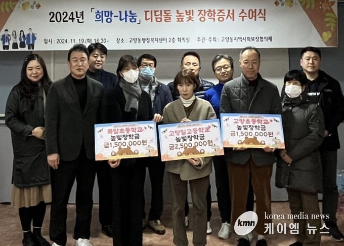 (케이엠뉴스) 고양특례시 덕양구 고양동 지역사회보장협의체에서는 지난 19일, 동행정복지센터 회의실에서 관내 초·중·고·대학생의 안정적인 학업 수행을 격려하기 위해 희망-나눔 디딤돌 높빛장학금 전달식을 개최했다.