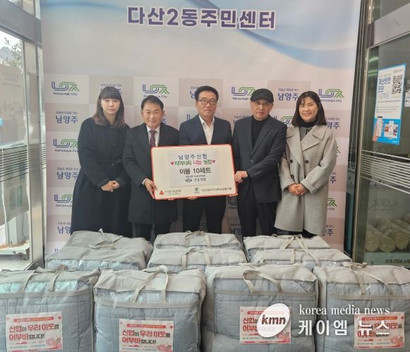 (케이엠뉴스) 남양주 신협은 20일 다산2동 지역사회보장협의체에 이불 10채를 전달하며 지역 내 형편이 어려운 이웃을 지원하는 나눔 활동을 진행했다.