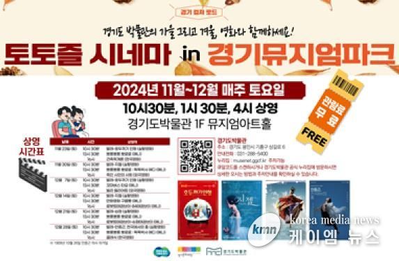 (케이엠뉴스) 경기문화재단 경기도박물관은 이번 가을과 겨울을 맞아 오는 11월 23일부터 12월 28일까지 매주 토요일마다 ‘토토즐 시네마 in 경기뮤지엄파크’를 진행한다. 이 프로그램에서는 다양한 영화를 매주 오전 10시 30분, 오후 1시 30분, 오후 4시에 상영하며, 각 일자별 상영작은 경기도박물관 공식 홈페이지에서 확인할 수 있다.