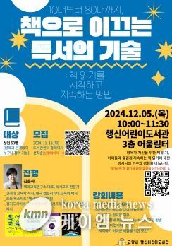 강의는 2024년 12월 5일 10시부터 11시 30분까지, 행신어린이도서관 3층에서 열린다. 고양시도서관센터 누리집 ‘프로그램 신청’란에서 자세한 내용 확인과 강의 신청이 가능하다.