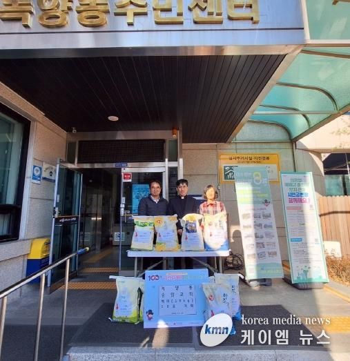 (케이엠뉴스) 의정부시 녹양동주민센터는 11월 22일 송암교회가 ‘100일간 사랑릴레이 배턴 잇기’에 동참해 생활이 어려운 가구를 위한 백미(100kg)를 기탁했다고 밝혔다.