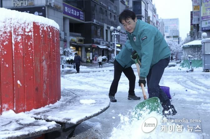 올해 첫 대설주의보가 내려진 지난 27일 새벽에는 시민들의 출근길이 불편하지 않도록 시 도로관리과, 구청 안전건설과 등 주요 제설 부서와 동 행정복지센터까지 비상근무를 실시했고 1,474명 직원들이 함께 특보 대응에 힘썼다.