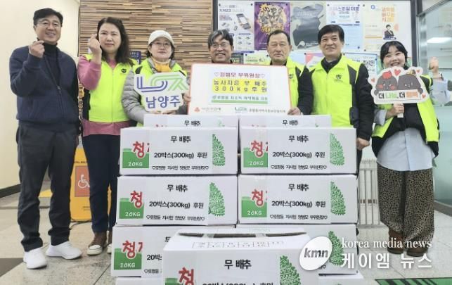 (케이엠뉴스) 남양주시 호평평내행정복지센터는 김장철을 맞아 지난 27일 호평동 지역사회보장협의체 정범모 부위원장이 직접 농사지은 무와 배추 300kg을 후원했다고 밝혔다.