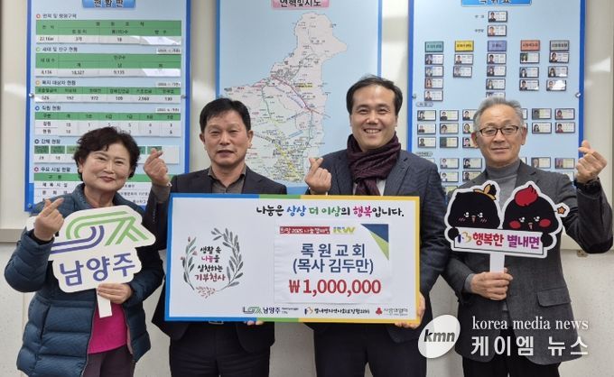 (케이엠뉴스) 남양주시 별내면은 지난 5일 대한예수교 장로회 록원교회에서 별내면 취약계층 지원을 위해 성금 100만 원을 기탁했다고 밝혔다.