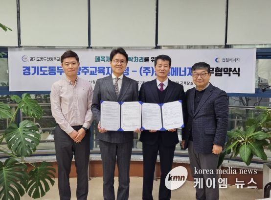 (케이엠뉴스) 경기도동두천양주교육지원청은 관내 공립학교에서 발생하는 폐목재를 자원 순환 및 탄소 중립적으로 처리하기 위해 ㈜천일에너지(대표 박상원)와 협력에 나섰다.