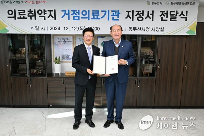 (케이엠뉴스) 동두천시는 12일, 동두천시청 시장실에서 경기도 최초로 의료취약지 거점의료기관으로 지정된 동두천 중앙성모병원에 지정서를 전달했다고 밝혔다.