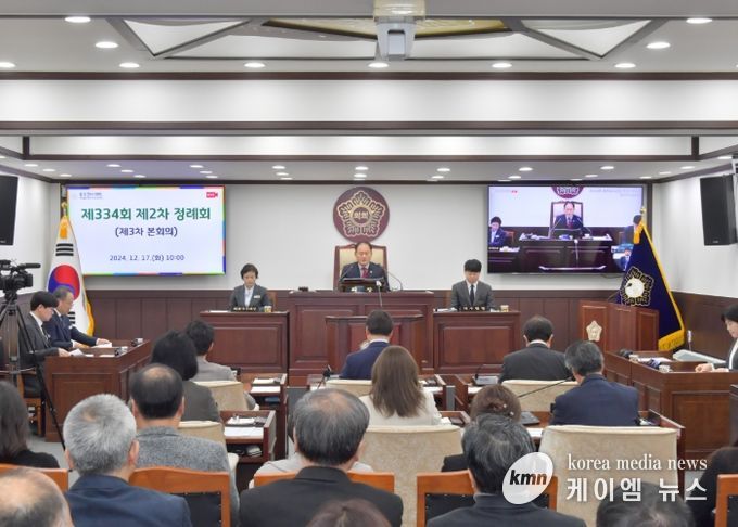 (케이엠뉴스) 동두천시의회는 12월 17일 제334회 제2차 정례회 제3차 본회의를 열어 '2025년도 예산안'및'2024년도 제3회 추경예산안'과 조례안 등 25개의 안건을 처리하고 16일 동안의 의사일정을 마무리했다.