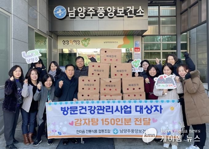 (케이엠뉴스) 남양주풍양보건소는 18일 동절기를 맞아 관내 재가암환자, 독거노인 등 돌봄과 지원이 필요한 방문건강관리 대상자 50가구에 감자탕 150인분을 전달했다.