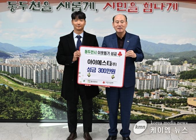 (케이엠뉴스) 동두천시는 아이에스티(주)에서 19일, 시장실에서 기부금 전달식을 진행했다고 밝혔다.