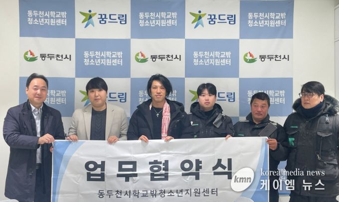 (케이엠뉴스) 동두천시 학교밖청소년지원센터는 18일, 고립·은둔 청소년 발굴 기반 마련을 위해 배달 대행업체인 부릉 지행점과 업무협약을 체결했다고 밝혔다. 특히 이번 협약에는 부릉의 배달원 배우 김민 씨도 참여했다.