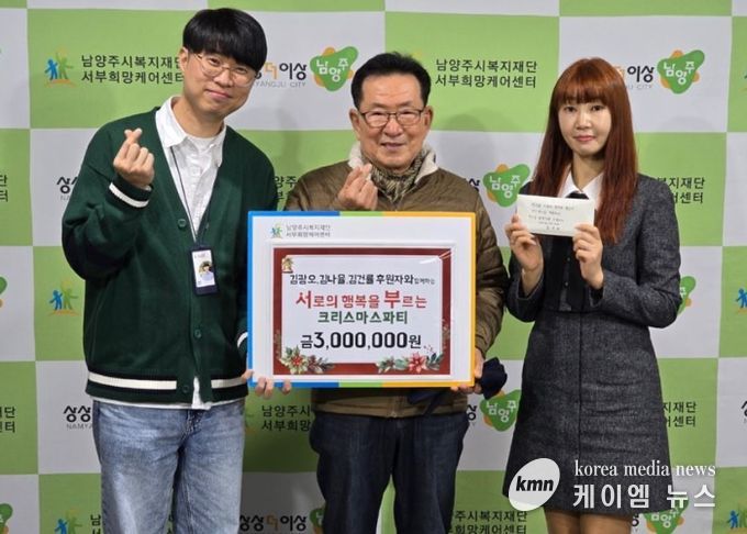 (케이엠뉴스) 남양주시 다산동에 거주하는 김광오 후원자는 지난 18일 손녀 김나율, 손자 김건률과 함께 다문화가족을 위한 후원금 300만원을 남양주시 사회복지관 서부희망케어센터에 전달했다.