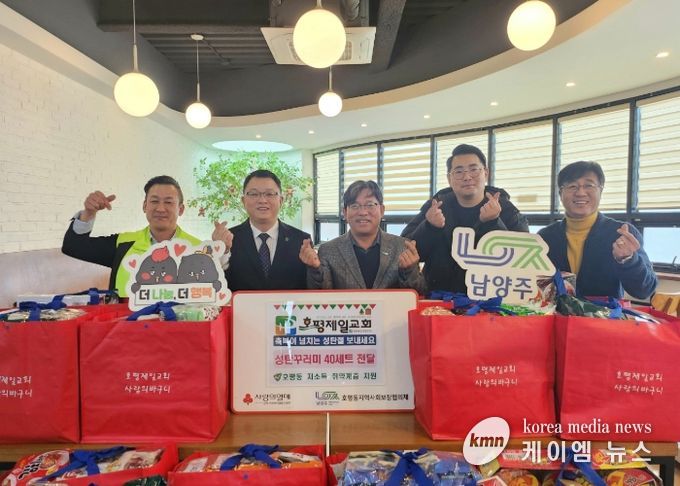 (케이엠뉴스) 남양주시 호평평내행정복지센터는 지난 20일 호평제일교회가 성탄절을 맞아 선물꾸러미 40세트를 호평동 지역사회보장협의체에 전달했다고 밝혔다.