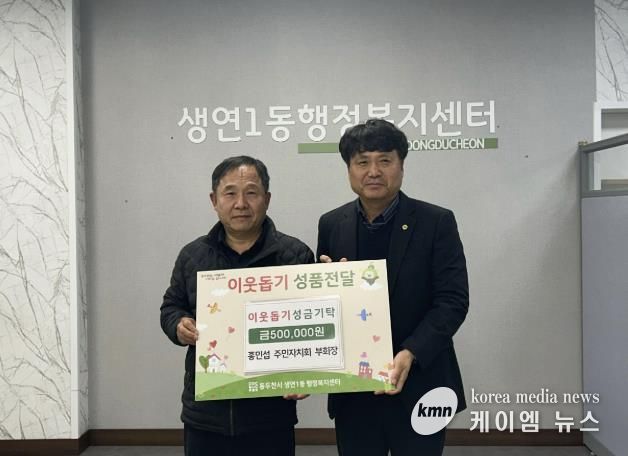 (케이엠뉴스) 동두천시 생연1동 행정복지센터는 생연1동 주민자치회 홍민섭 부회장이 관내 복지혜택이 꼭 필요한 어려운 이웃을 돕는 목적으로 성금 50만 원을 기부했다고 전했다.
