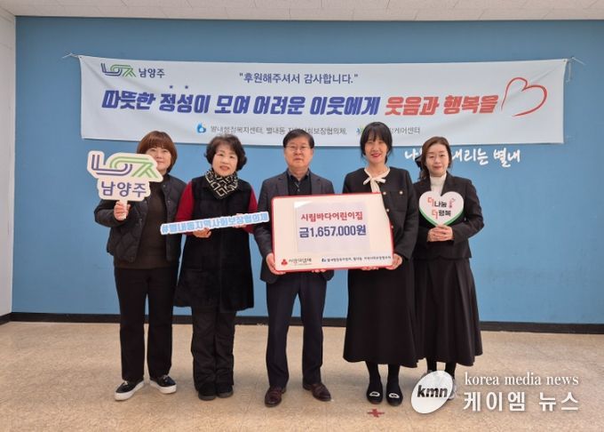 (케이엠뉴스) 남양주시 별내동에 소재한 시립바다어린이집은 지난 23일 지역 내 취약계층을 지원하기 위해 후원금 165만 7천 원을 별내동 지역사회보장협의체에 기탁했다.