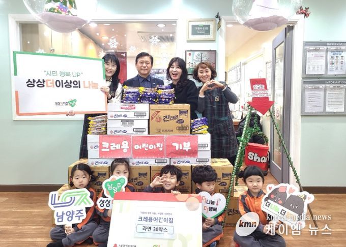 (케이엠뉴스) 남양주시 화도읍에 소재한 크레용어린이집은 지난 24일 소외된 이웃을 돕기 위해 조안면사무소에 라면 30박스를 기부했다.