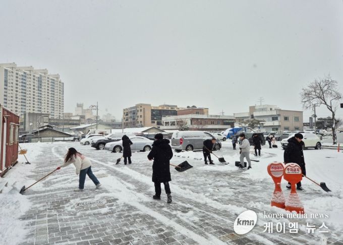 인근 성당 관계자와 마을 이장은 간식 후원을 통해 제설 작업에 나선 직원들을 격려하며 겨울철 재난 대응에 힘을 보탰다.