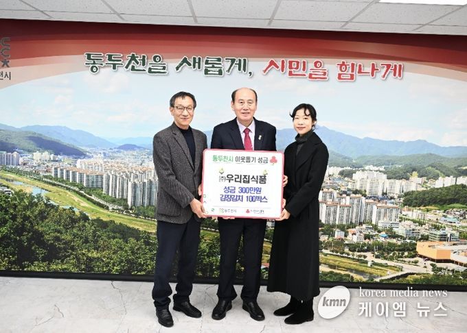 (케이엠뉴스) 동두천시 푸드테크 기업 ㈜우리집식품은 8일 관내 저소득층을 위해 성금 3백만 원과 김장 김치 400박스(400만 원 상당)를 기부했다고 밝혔다.