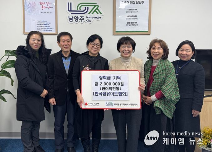 (케이엠뉴스) 남양주시 소재 한국섬유아트협회는 지난 15일 퇴계원읍 지역사회 협의체에 관내 취약계층 학생들을 위한 장학금 200만원을 기탁했다.