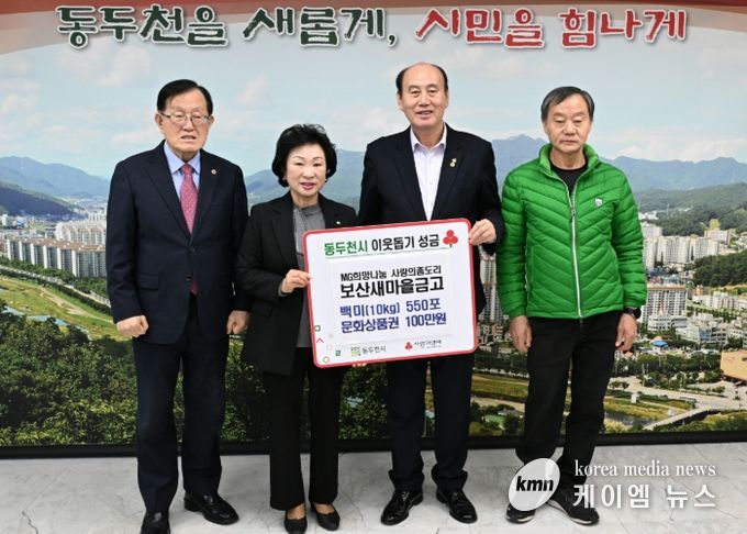 (케이엠뉴스) 동두천시 보산새마을금고는 15일, ‘사랑의 좀도리 운동’을 통해 모은 성금으로 백미 10kg 550포(총 5,500kg)와 문화상품권 100만 원을 기부했다고 밝혔다.