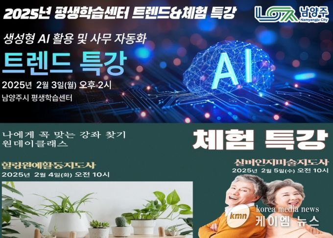 한편, 남양주시 평생학습센터는 시민들의 자기계발과 경쟁력 강화를 지원하기 위해 다양한 분야의 실용적이고 전문적인 교육을 제공하고 있다.