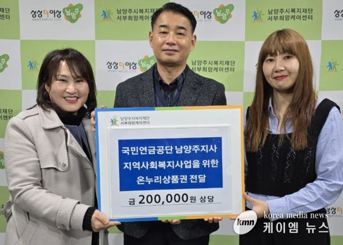 (케이엠뉴스) 국민연금공단 남양주지사는 지난 22일 설 명절을 맞아 서부희망케어센터에 온누리상품권 20만 원을 후원했다.