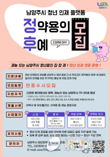 지원 자격은 남양주시에 거주하는 만 19세에서 39세까지의 청년으로, 다양한 분야에서 경력과 재능을 보유한 사람이라면 누구나 참여할 수 있다.