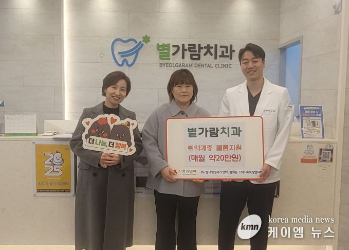 (케이엠뉴스) 남양주시 별내동 소재 별가람치과의원은 지난 19일 관내 취약계층 지원을 위한 맞춤형 후원물품을 별내행정복지센터에 기부했다.