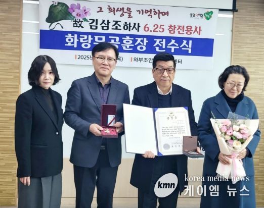 (케이엠뉴스) 남양주시 와부조안행정복지센터는 지난 6일, 6.25전쟁에 참전한 유공자인 故 김삼조 하사의 유족(자녀 김민철)에게 화랑무공훈장을 전수했다.