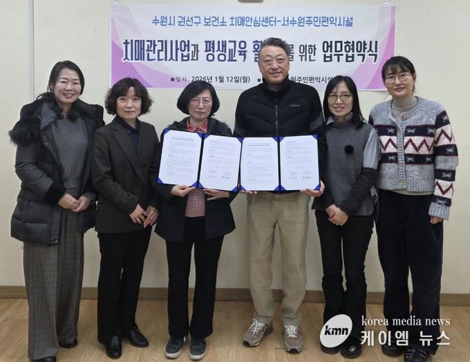 (케이엠뉴스) 수원시 권선구보건소 치매안심센터와 서수원주민편익시설은 12일 서수원주민편익시설 강의실에서 치매관리사업과 평생교육 활성화를 위한 업무협약을 체결했다.