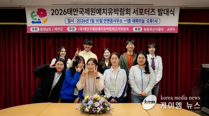 (케이엠뉴스) 태안국제원예치유박람회 조직위원회는 1월 10일 오후 1시 태안 안면도 일원에서 ‘태안국제원예치유박람회 서포터즈 발대식’을 열고 시민 참여형 홍보 활동을 본격적으로 시작한다고 밝혔다.