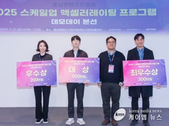 (케이엠뉴스) 충남콘텐츠진흥원은 충남콘텐츠기업지원센터 ‘2025년 스케일업 액셀러레이팅 프로그램’의 우수기업 에이뉴프로덕션, 컴퍼니에이, 해시퍼플 등 3개 기업 모두가 중소벤처기업부의 기술창업투자프로그램인 TIPS(Tech Incubator Program for Startup) 일반트랙에 선정됐다고 13일 밝혔다.