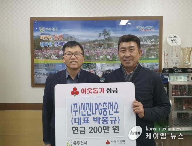(케이엠뉴스) 동두천시 상패동 행정복지센터는 지난 23일 관내 소재한 (주)신진LPG충전소로부터 저소득 취약계층을 위한 이웃돕기 성금 200만 원을 기탁받았다고 밝혔다.