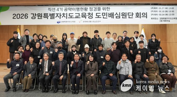 (케이엠뉴스) 강원특별자치도교육청은 1월 27일 오후 1시, 강원특별자치도교육청 대회의실에서 ‘2026년 교육감 공약 도민배심원단 1차 회의’를 개최했다.