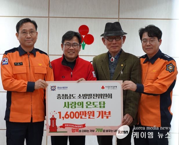 (케이엠뉴스) 충청남도 소방발전위원회(소방정책 자문·협의기구)는 지난 30일 연말연시 이웃돕기 성금 모금인 ‘사랑의 온도탑’에 성금 1600만 원을 기탁했다고 1일 밝혔다.