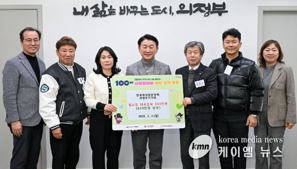 이날 시장실에서 진행된 전달식에는 김성군 지부장(큰형네의정부부대찌개 대표)을 비롯해 남효진 의정축산식당 대표, 김은주 철원양평해장국 대표, 김현식 구끼구끼 민락본점 대표, 이상훈 송추가마골 의정부점 대표 등 지역 외식업계를 대표하는 임원진이 참석해 온정을 더했다.