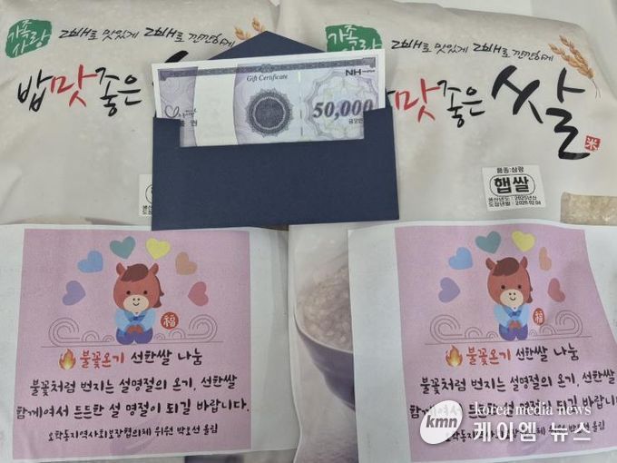 (케이엠뉴스) 오학동행정복지센터는 설 명절을 맞아 경제적 어려움을 겪고 있는 관내 한부모 가정과 복지사각지대 가구를 대상으로 ‘불꽃온기 선한 쌀·상품권 나눔 사업’을 진행했다고 밝혔다. 이번 나눔 사업은 명절을 앞두고 취약계층의 경제적 부담을 덜어주고, 지역사회에 따뜻한 온기를 전하기 위해 마련됐다.